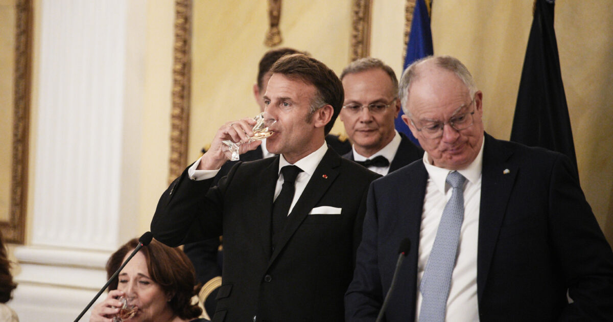- Επίσημο δείπνο του Προέδρου της Δημοκρατίας Κωνσταντίνου Τασούλα στον Πρόεδρο της Γαλλίας Emmanuel Macron, στο Προεδρικό Μέγαρο, Παρασκευή 24 Απριλίου 2026. (POOL/ΜΕΝΕΛΑΟΣ ΜΥΡΙΛΑΣ/SOOC /EUROKINISSI)
