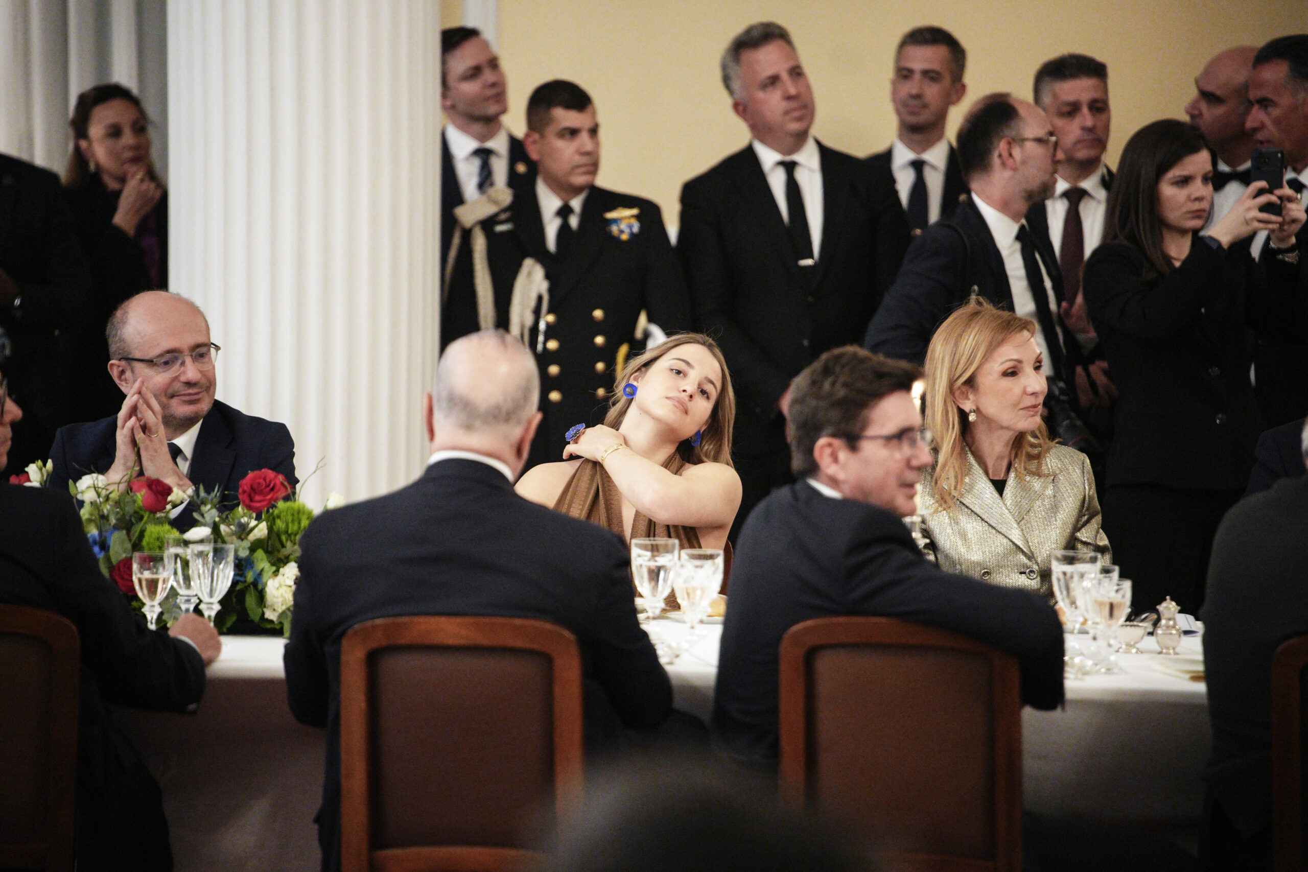 Λάμψη και χαμόγελα στο Προεδρικό Μέγαρο, με τον Εμανουέλ Μακρόν και την σύζυγό του Μπριζίτ, να απολαμβάνουν την ελληνική φιλοξενία. Οι φωτογράφοι στην αίθουσα που παρατέθηκε το δείπνο εστίαζαν στους καλεσμένους, με τον Κυριάκο Μητσοτάκη να συνοδεύεται από την κόρη του καθώς η Μαρέβα Γκραμπόφσκι νοσηλευόταν στον Ευαγγελισμό. Ο Νίκος Αλιάγας, προσωπικότητες του επιχειρηματικού κόσμου της χώρας και πολιτικοί, πήραν τις θέσεις τους και παρακολούθησαν τις ομιλίες.