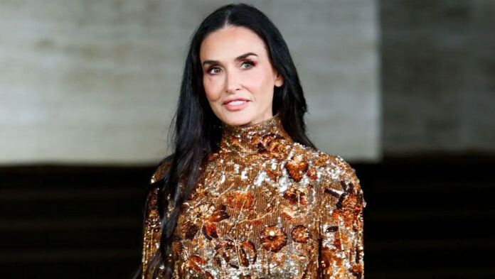Η Demi Moore, βασική πρωταγωνίστρια της ταινίας, μαγνήτισε τα βλέμματα με την εμφάνιση της επιλέγοντας μια μακριά, χρυσαφένια δημιουργία με λουλουδάτο μοτίβο και παγιέτες που έλαμπαν σε κάθε της κίνηση απογειώνοντάς το με το πιο chic beauty look.