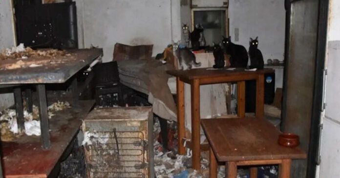 Αστυνομικοί που πραγματοποίησαν έφοδο ύστερα από καταγγελία για βασανισμό ζώων, σε περιφραγμένο χώρο ιδιοκτησίας του 63χρονου στη Δονούσα, αντίκρισαν μία άθλια εικόνα βρομιάς και πλήρους ακαταστασίας, συνθήκες κάτω από τις οποίες προσπαθούσαν να επιβιώσουν οι 58 γάτες.
