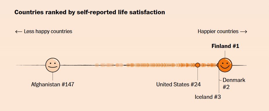 «Η Φινλανδία είναι η χώρα της ήσυχης ικανοποίησης», περιέγραψε χαρακτηριστικα ο Frank Martela, καθηγητής που ερευνά την ανθρώπινη ευημερία και τα κίνητρα στο Πανεπιστήμιο Aalto στη Φινλανδία. «Όταν οι Φινλανδοί σταματούν να σκεφτούν τη ζωή τους, συνειδητοποιούν ότι τα πράγματα είναι σχετικά εντάξει».