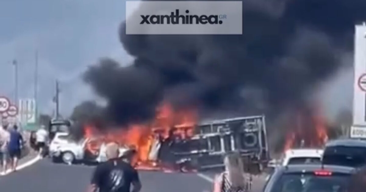Το σοκαριστικό τροχαίο δυστύχημα έγινε το μεσημέρι της Δευτέρας (18.08.2025) στην Εγνατία Οδό με κατεύθυνση προς Ξάνθη. Ο οδηγός του φορτηγού, κινούμενος με μεγάλη ταχύτητα, καρφώθηκε σε όχημα που είχε ακινητοποιηθεί λόγω της ουράς στα διόδια με αποτέλεσμα να ξεσπάσει τεράστια φωτιά.