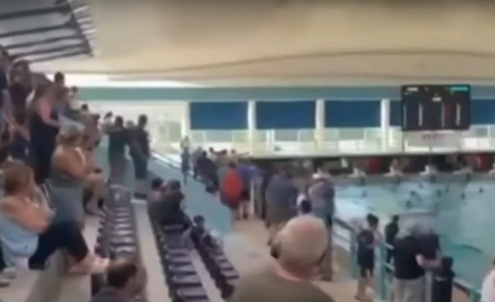 Σε βίντεο που κατέγραψαν αυτόπτες μάρτυρες φαίνονται ενήλικες να κρέμονται από τα κάγκελα του κολυμβητηρίου και να καταφέρονται κατά των ανήλικων παιδιών.