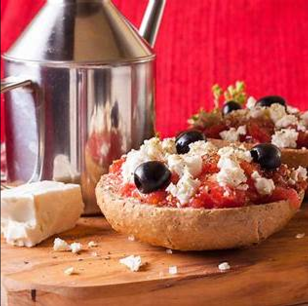 - Dakos: A traditional Cretan meze, dakos features a slice of soaked dried bread or barley rusk (paximadi) topped with chopped tomatoes and crumbled feta or mizithra cheese, dried oregano, and a few splashes of olive oil.