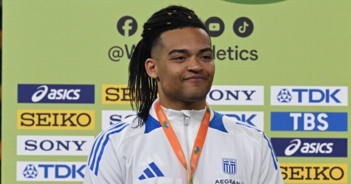 Ο Εμμανουήλ Καραλής παρέλαβε τo ασημένιο μετάλλιο για τη δεύτερη θέση στο άλμα επί κοντώ του παγκοσμίου πρωταθλήματος κλειστού στίβου της Πολωνίας και εμφανίστηκε ιδιαίτερα χαρούμενος στην κάμερα της ΕΡΤ.