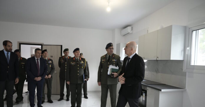 Έπειτα πρόσθεσε: «Συμφωνήσαμε ότι σε τρία σημαντικά στρατόπεδα, στο Μοσχάτο, εδώ στο στρατόπεδο Ζιάκα, στην Πάτρα στο στρατόπεδο Μανουσογιαννάκη, θα χτιστούν, με πρωτοβουλία των Ενόπλων Δυνάμεων, 2.000 διαμερίσματα, 25% αυτών θα στεγάσουν τα στελέχη των Ενόπλων Δυνάμεων, το 75% θα αποδοθεί σε συμπολίτες μας που δεν έχουν πρώτη κατοικία».