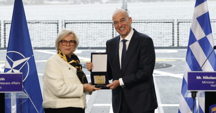 Στιγμιότυπο από τη συνάντηση του υπουργός Εθνικής Άμυνας Νίκου Δένδια με την υπουργό Ενόπλων Δυνάμεων της Γαλλίας, Κατρίν Βοτρίν, τον Ιανουάριο του 2026 (Φωτογραφία αρχείου / ΓΙΩΡΓΟΣ ΚΟΝΤΑΡΙΝΗΣ / EUROKINISSI)