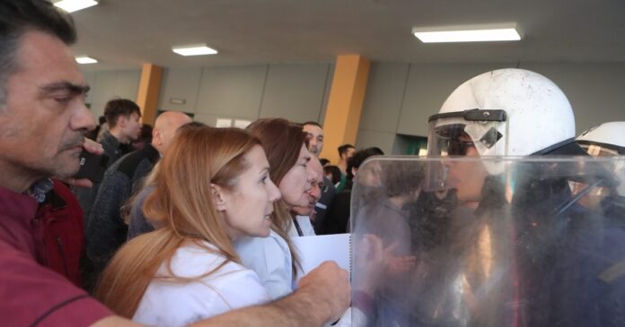 Ακόμη και όταν μπήκε ο Άδωνις Γεωργιάδης μέσα στο νοσοκομείο, τα επεισόδια συνεχίστηκαν μεταξύ των εργαζομένων και της αστυνομίας.
