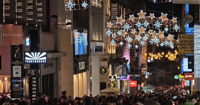Φυσικά, λόγω της περιόδου, εντυπωσιακός είναι ο χριστουγεννιάτικος στολισμός και οι εορταστικές μελωδίες που ηχούν στην Ερμού, δημιουργώντας μια ζεστή ατμόσφαιρα.