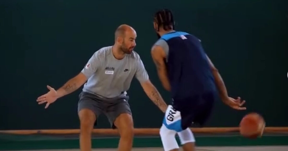 Ο Βασίλης Σπανούλης συνηθίζει να έχει ενεργή συμμετοχή στις προπονήσεις της Εθνικής μπάσκετ.
