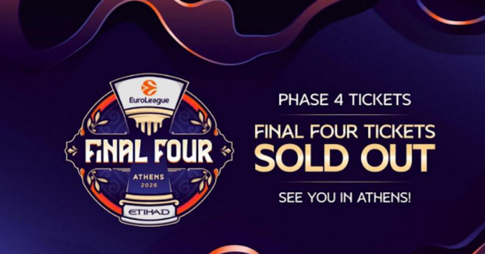 Η εξαιρετική ζήτηση για το Final Four της Euroleague 2026 στην Αθήνα, που παρουσιάζεται από την Etihad, έφτασε στο αποκορύφωμά της, καθώς όλα τα εισιτήρια που διατέθηκαν στο ευρύ κοινό, συμπεριλαμβανομένης της τελικής διάθεσης της Φάσης 4, έχουν επίσημα εξαντληθεί.