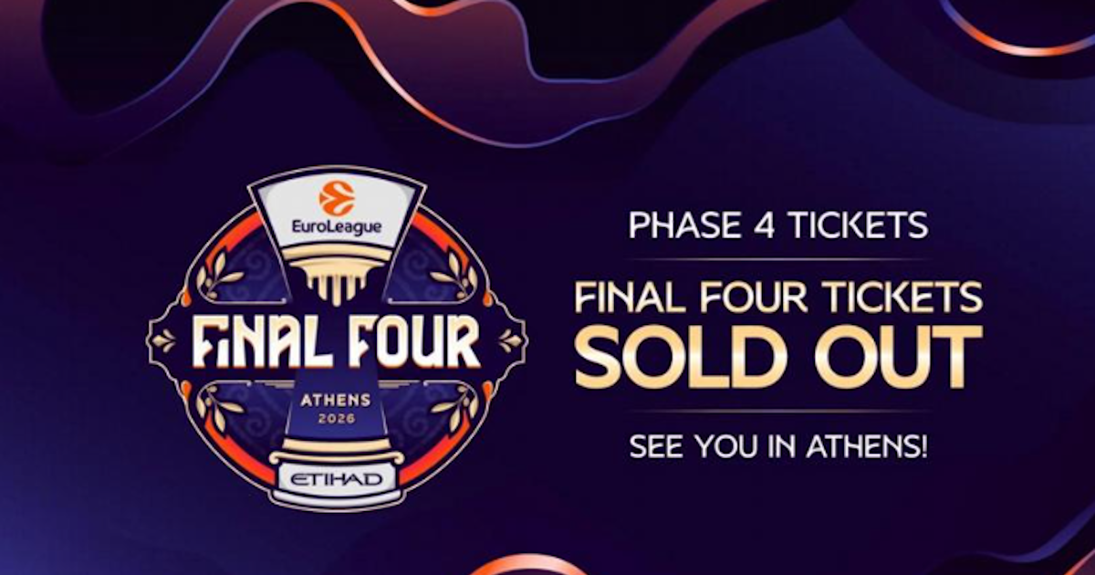 «Η Euroleague ανακοίνωσε ότι όλα τα εισιτήρια που διατέθηκαν στο ευρύ κοινό για το Final Four 2026 στην Αθήνα. Όλα τα εισιτήρια για το ευρύ κοινό για το Final Four της Euroleague 2026 στην Αθήνα, που παρουσιάζεται από την Etihad, εξαντλήθηκαν.