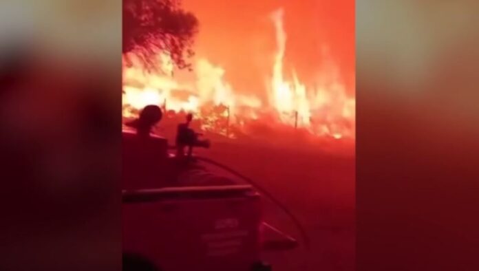 Ολονύχτια μάχη με τη φωτιά έδωσαν οι 112 πυροσβέστες που επιχειρούν στην περιοχή.