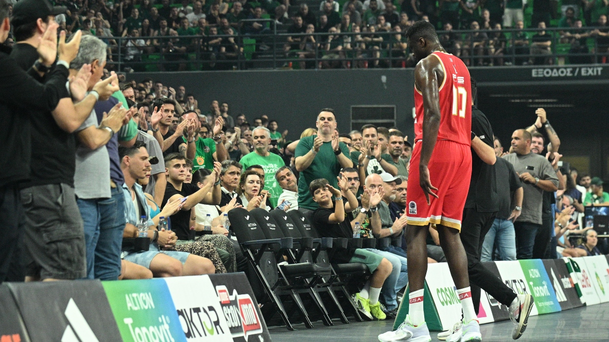 Ο Γάλλος σέντερ του Ολυμπιακoύ τραυματίστηκε στα μισά της πρώτης περιόδου σε προσπάθεια να κόψει τον Όσμαν, όμως προσγειώθηκε ανώμαλα στο παρκέ του ΟΑΚΑ.