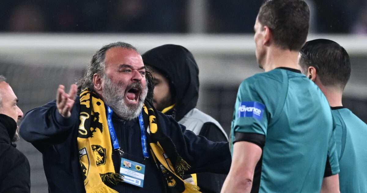 Ο ισχυρός άνδρας της ΑΕΚ κατέβηκε στον αγωνιστικό χώρο της Allwyn Arena, διαμαρτυρόμενος έντονα για τη συγκεκριμένη απόφαση. Ο Μάριος Ηλιόπουλος έδειξε με τις εκφράσεις του -όπως φαίνεται από τις φωτογραφίες της Eurokinissi- την έντονη δυσαρέσκειά του για την απόφαση του Μάκελι.