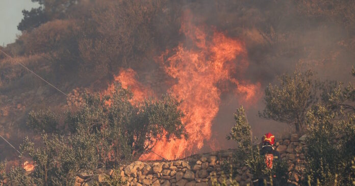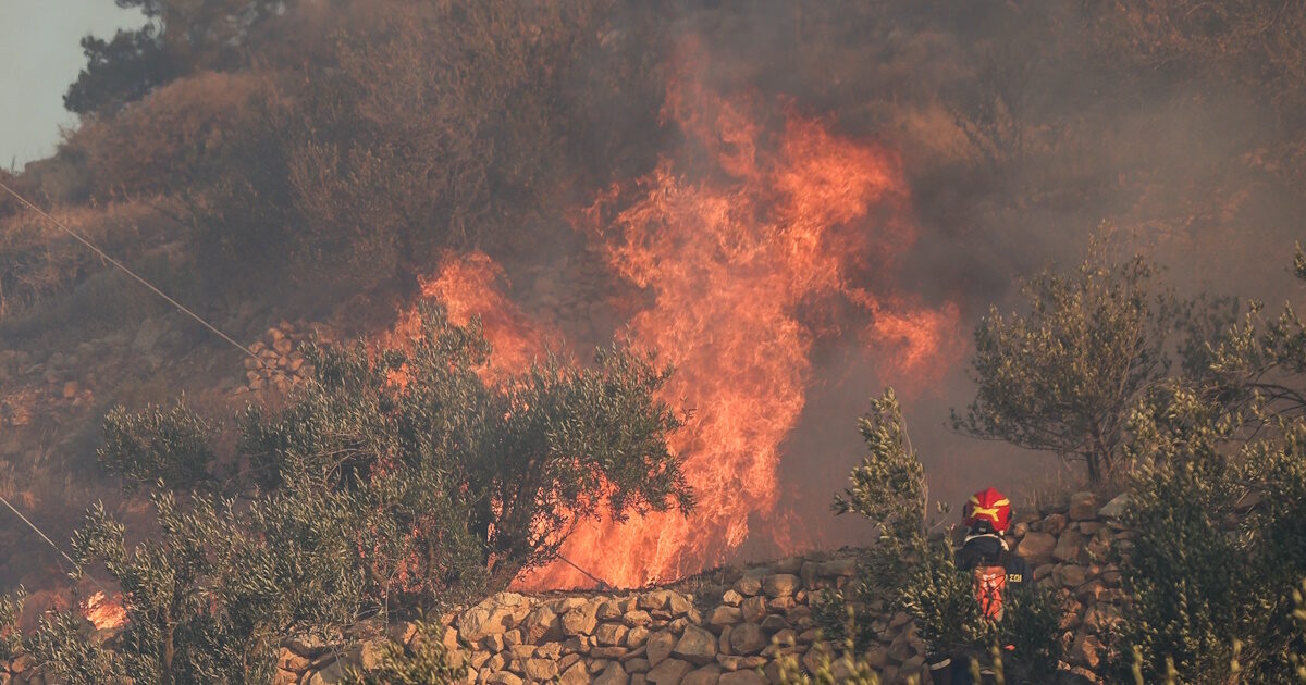 Η φωτιά για την ώρα δεν απειλεί κατοικημένες περιοχές.