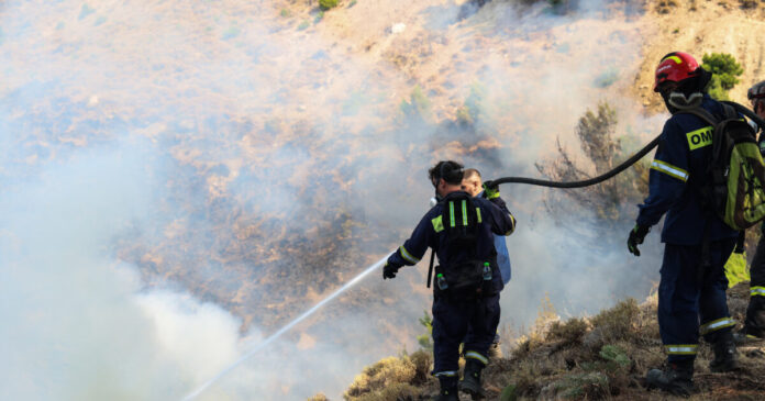 Από την πυροσβεστική έχουν κινητοποιηθεί 60 πυροσβέστες, τρεις πεζοπόρες ομάδες και 20 οχήματα.