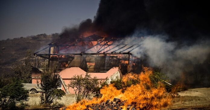 Το πύρινο μέτωπο έχει ξεπεράσει τα 7 χιλιόμετρα και φαίνεται πως κατευθύνεται στη θάλασσα.