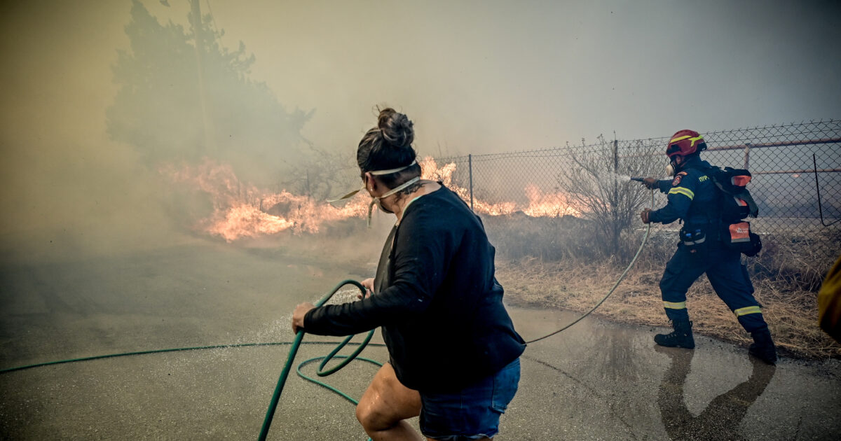 Δίπλα τους έδωσαν «μάχη» και εθελοντές ώστε η φωτιά να μην πάρει μεγάλες διαστάσεις.