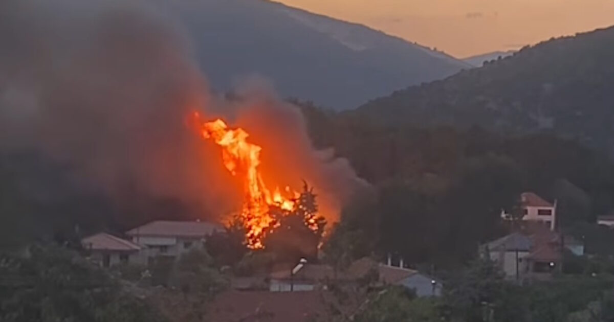 Οι κάτοικοι του χωριού βγήκαν στους δρόμους, στη θέα της φωτιάς.