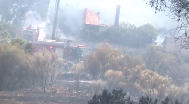 Σύμφωνα με τις πληροφορίες, οι φλόγες έχουν φτάσει στις αυλές σπιτιών και κατευθύνονται προς την θάλασσα.