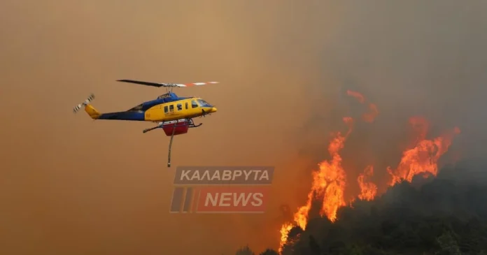 Για την κατάσβεση της φωτιάς στα Καλάβρυτα πλέον επιχειρούν 39 πυροσβέστες με δυο ομάδες πεζοπόρων της 6ης ΕΜΟΔΕ και 9 οχήματα ενώ για την αεροπυρόσβεση έχουν διατεθεί 5 αεροσκάφη και 4 ελικόπτερα.