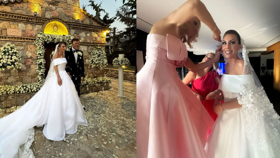 Η Κατερίνα έλαμπε μέσα στο κομψό νυφικό της, δημιουργία της σχεδιάστριας Μαρίας Κονίδη, ενώ ο τραγουδιστής δεν έκρυψε τη χαρά και τη συγκίνηση του για τη μεγάλη μέρα.