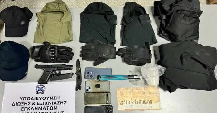 Έχοντας καλυμμένα τα πρόσωπά τους και απείλησαν τους αστυνομικούς με σφυρί, μαχαίρι και πιστόλι.
