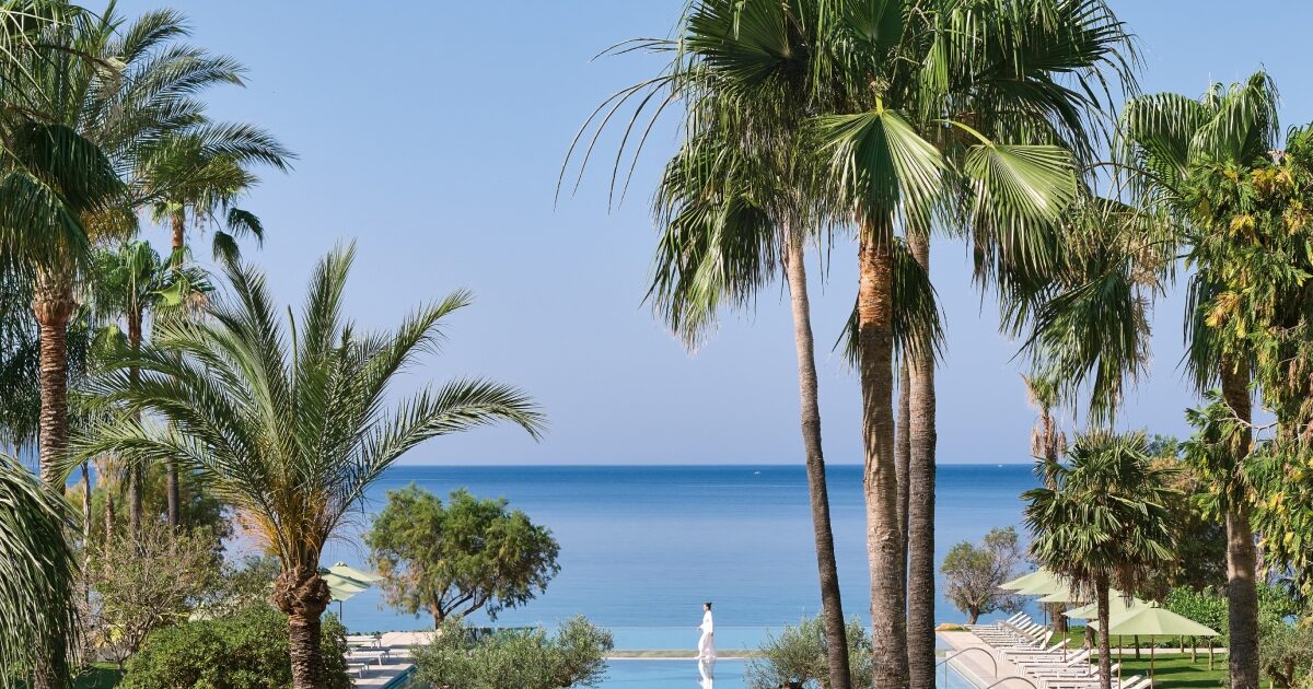 Η αρχιτεκτονική του είναι χαρακτηριστική νοσταλγικών εποχών της παραθαλάσσιας Ελλάδας: επιβλητικά κτίρια με χρώματα και κεραμοσκεπές, μεσογειακοί ελαιόκηποι, και chambres de jardin σε γραμμική ακολουθία με την ακτή. Ένα εντυπωσιακό σύνολο από πισίνες που υπερχειλίζουν στα τέσσερα σημεία του ορίζοντα πλαισιώνονται από αλμυρίκια και φοίνικες και βρίσκονται στο κέντρο του ξενοδοχείου δίπλα στα εστιατόρια, την παραλία και τα μπαρ.