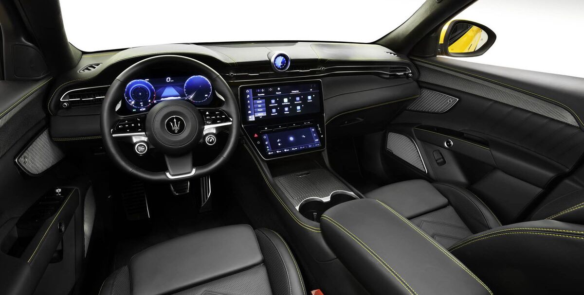 Το πολυτελές αλλά και άνετο εσωτερικό χάρη και στο μεταξόνιο των 2.901 χιλιοστών -το μήκος της Grecale φτάνει τα 4,86 μέτρα- έχει και έναν high tech αέρα χάρη στις δύο οθόνες στην κεντρική κονσόλα. Αυτή που είναι τοποθετημένη πιο ψηλά έχει διαγώνιο 12,3 ιντσών, η κάτω είναι πιο μικρή (8,8 ίντσες), ενώ ψηφιακός είναι και ο πίνακας οργάνων. Από κει και πέρα ο εξοπλισμός περιλαμβάνει πολλά συστήματα υποβοήθησης και πλήρεις δυνατότητες διασύνδεσης.