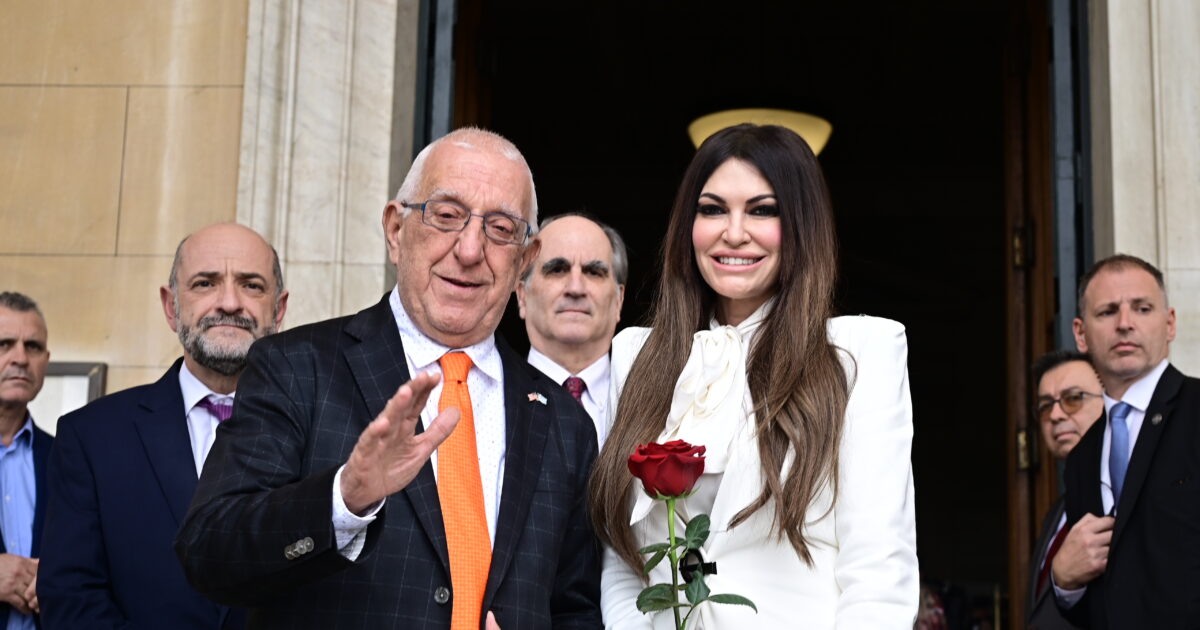 Με ένα κόκκινο τριαντάφυλλο υποδέχθηκε ο Πρόεδρος της Βουλής, Νικήτας Κακλαμάνης την πρέσβη των ΗΠΑ, Κίμπερλι Γκιλφόιλ.