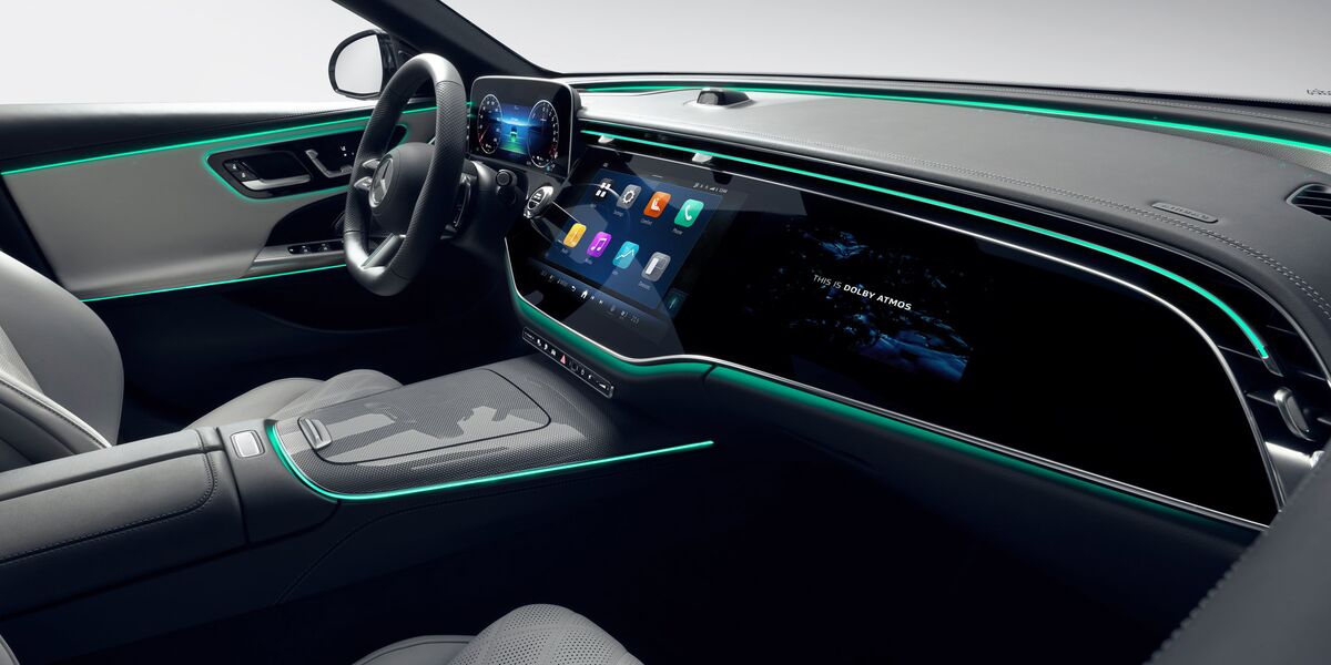 Όταν η Ε-Class κινείται ο οδηγός, για λόγους ασφαλείας, δεν μπορεί να δει τι προβάλλεται στην οθόνη που βρίσκεται ακριβώς μπροστά από το συνοδηγό, ενώ όταν υπάρχει προαιρετικό ηχοσύστημα Burmester 4D Surround ο ήχος κατά κάποιον τρόπο «οπτικοποιείται» μέσω του συστήματος εσωτερικού φωτισμού.