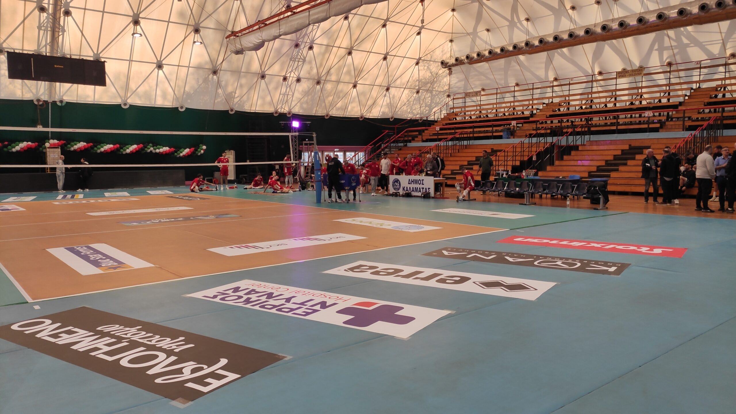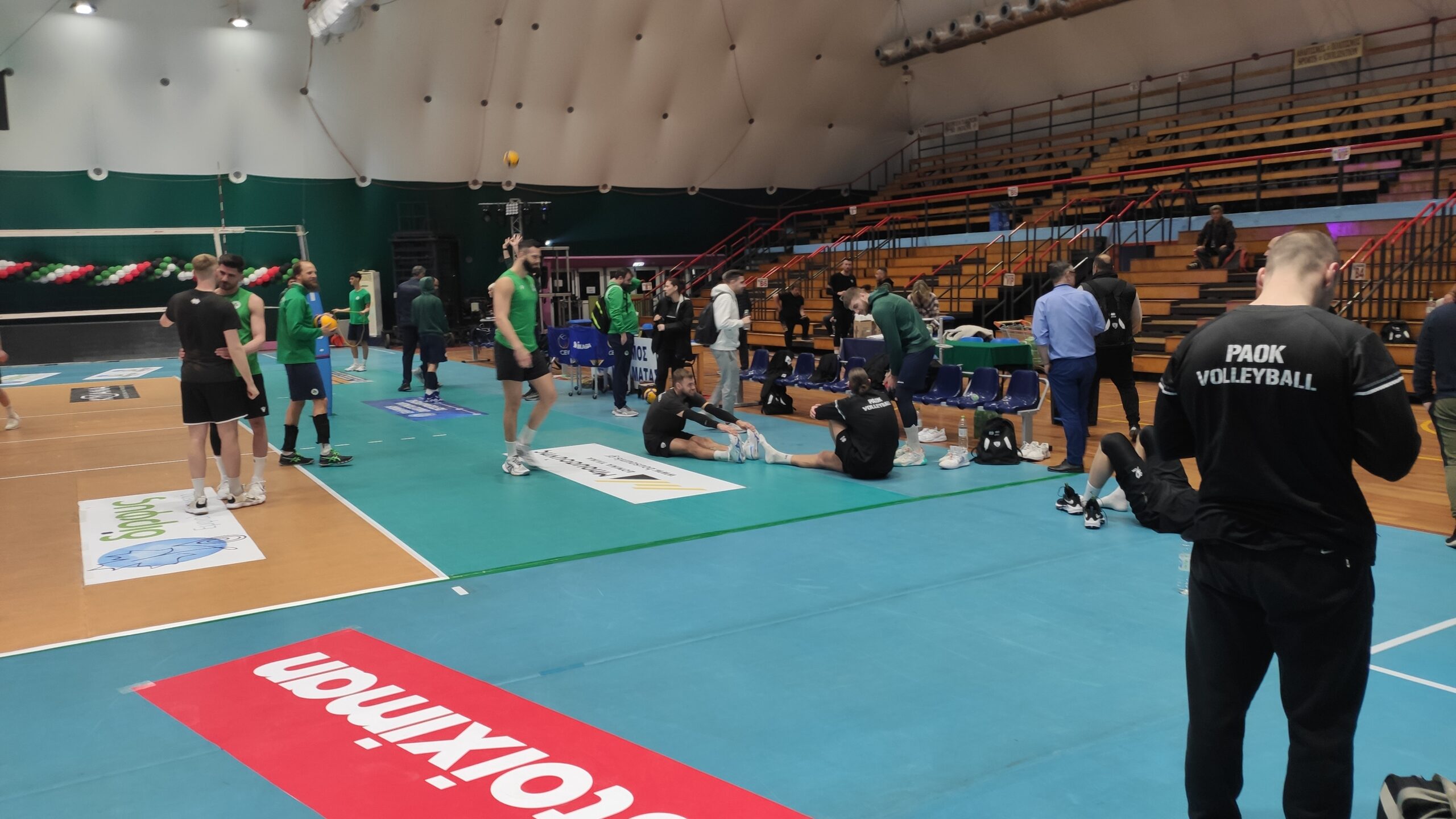 Μίλων, Ολυμπιακός, ΠΑΟΚ και Παναθηναϊκός προπονήθηκαν στο κλειστό γυμναστήριο Τέντας, το απόγευμα της Πέμπτης (30/3). Πρόκειται για μια… ιδιαίτερη εγκατάσταση, κάτι που αποκαλύπτει και η ονομασία της. Αυτό συμβαίνει διότι το κάλυμμά της είναι ένα… τεντόπανο, χωρίς να υπάρχει κάποια επιπρόσθετη κατασκευή. Στην οροφή υπάρχουν και τρεις ανεμιστήρες προκειμένου να ανανεώνεται ο αέρας στη σάλα. Πρόκειται για έναν τύπο κλειστού που… σπάνια συναντά κανείς. Μάλιστα αυτό αποτέλεσε αντικείμενο συζήτησης και ανάμεσα στους παίκτες των ομάδων.