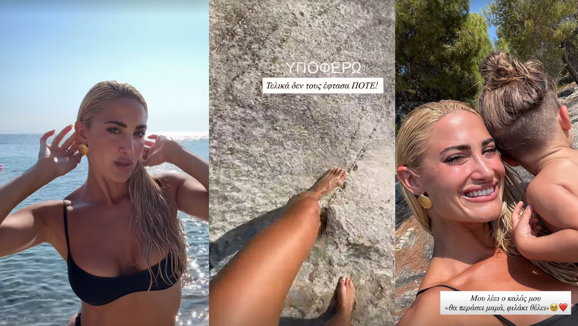 «Άλλη μια μέρα που ξυπνήσαμε χάραμα για να πάμε θάλασσα γιατί ξέρεις, ο δρόμος από Θεσσαλονίκη προς Χαλκιδική γύρω στις 10 δεν παλεύεται, οπότε ξεκινάμε τώρα», ανέφερε στις 08:30 στο βίντεο που μοιράστηκε με τους διαδικτυακούς της φίλους.