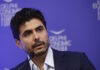 Παράλληλα, έπλεξε το εγκώμιο της αντιπροέδρου του και υποψήφιας για το χρίσμα των Δημοκρατικών, Κάμαλα Χάρις.