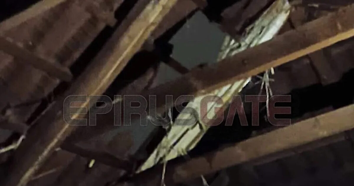 Ο κεραυνός «τρύπησε» τη στέγη και φαίνεται ο ουρανός