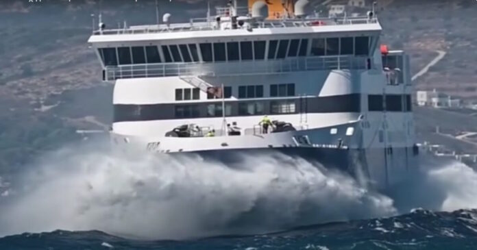 Κόντρα στα κύματα ταξιδεύει το «Blue Star Naxos» στο στενό Πάρου – Νάξου. Το πλοίο κάνει κανονικά το δρομολόγιό του την Παρασκευή (19.09.2025) παρά το απαγορευτικό απόπλου, λόγω των θυελλωδών ανέμων που φτάνουν και τα 9 μποφόρ.
