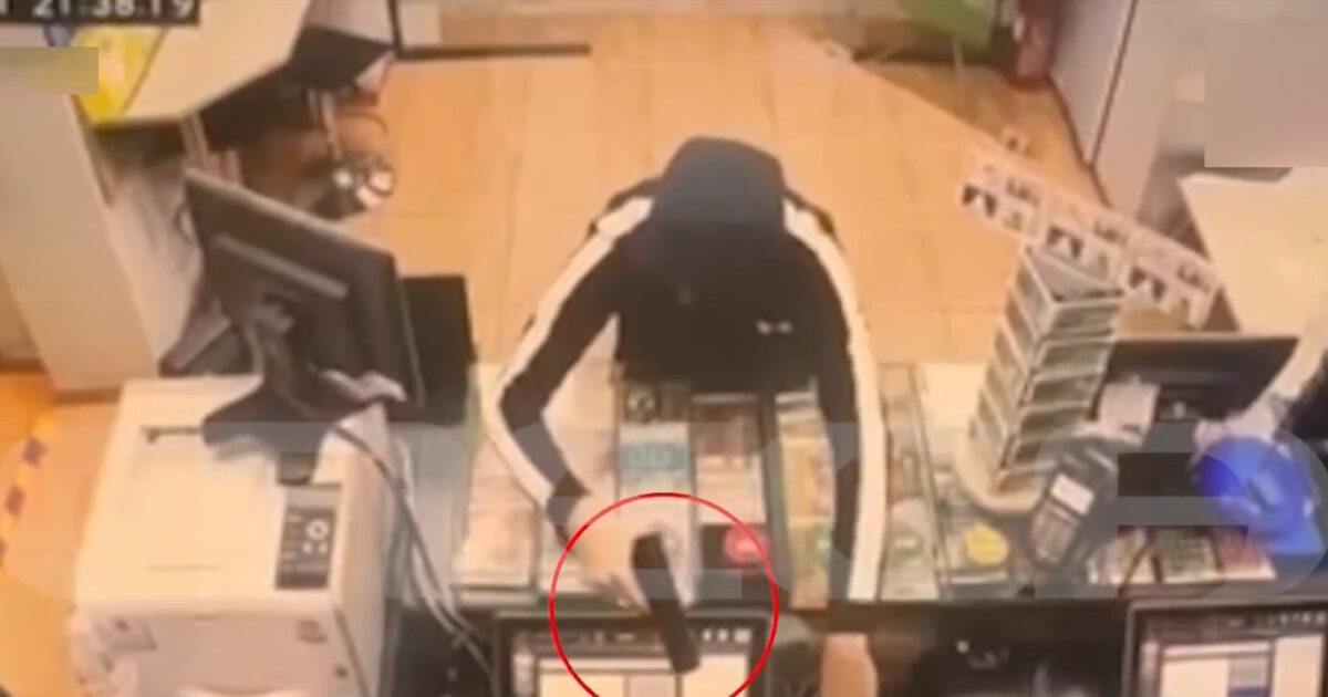 Ο ένας εκ των ενόπλων φαίνεται στο βίντεο ντοκουμέντο να δίνει εντολές, ενώ οι δύο νεαροί περνούν πίσω από τον πάγκο και πλησιάζουν τον τρομοκρατημένο αλλά ψύχραιμο ιδιοκτήτη. Με γρήγορες κινήσεις ο αρχηγός δείχνει στον ιδιοκτήτη να τους παραδώσει όλα τα χρήματα.
