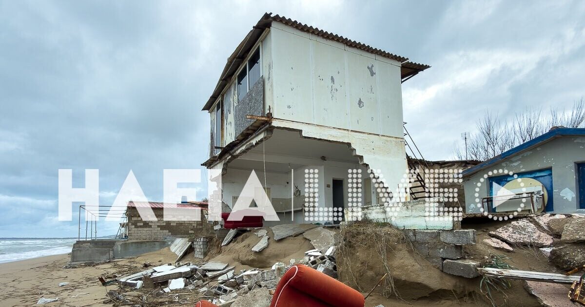 Στην περιοχή της Μούτελης και της Σπιάντζας, στον Πύργο, η διάβρωση των ακτών, σε συνδυασμό με τους θυελλώδεις ανέμους που έφερε η κακοκαιρία, γκρέμισε σπίτι με αποτέλεσμα να φαίνεται ξεκάθαρα το εσωτερικό του. Η θάλασσα «καταβρόχθησε» τη βάση του κτιρίου και σιγά σιγά κατέστρεψε και μεγάλο τμήμα του ισογείου. Σε άλλες περιοχές της Ηλείας, σε Πρέβεζα και Παλαιοκαστρίτσα, υπάρχουν αρκετές κυκλοφοριακές ρυθμίσεις.