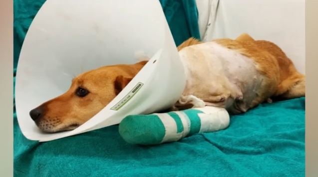 «Στην κτηνίατρο, όταν κάναμε τις ακτινογραφίες, βεβαιώθηκε ότι το σκυλί είχε πυροβοληθεί από κοντινή απόσταση. Το ένα πόδι είχε διαλύσει εντελώς. Τα κόκαλα ήταν θρυμματισμένα με αποτέλεσμα να γίνει ο ακρωτηριασμός τους ενός ποδιού», λέει ο εθελοντής που την έσωσε.