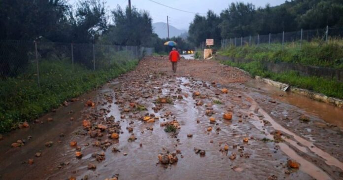 Συνολικά 5 φορτηγά γέμισαν με φερτά υλικά που «κατέβασαν» τα ορμητικά νερά ή με βράχους από τις κατολισθήσεις. Στην ίδια περιοχή σχηματίστηκε και καταρράκτης μιας και το έδαφος είναι ήδη κορεσμένο και δεν μπορεί να απορροφήσει το νερό της βροχής.