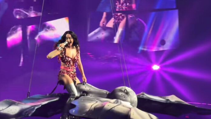 Σε βίντεο που κυκλοφόρησε στο TikTok βλέπουμε την Katy Perry να τραγουδά με ενθουσιασμό το τραγούδι της μεγάλης επιτυχίας του 2013, «Roar», όταν η «πεταλούδα» πάνω στην οποία βρισκόταν τινάχτηκε, σταμάτησε και «βυθίστηκε» ακανόνιστα στο κοινό. Ευτυχώς, κανείς δεν τραυματίστηκε – ούτε η τραγουδίστρια ούτε το πλήθος, καθώς η πτώση σταμάτησε εγκαίρως.