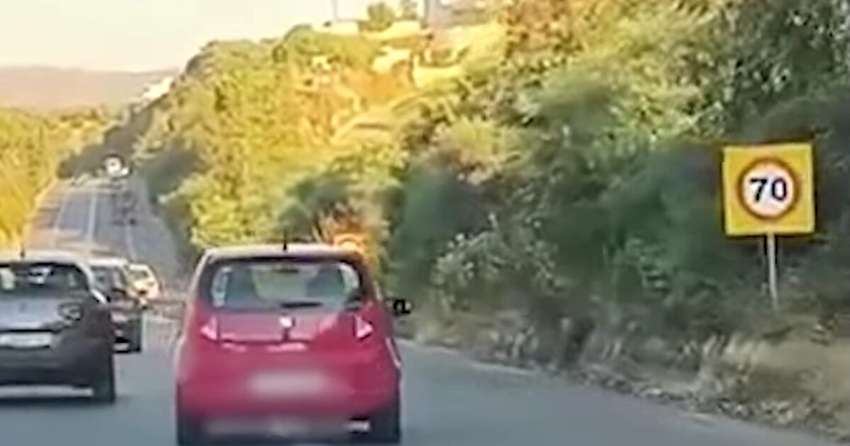 Μία άκρως επικίνδυνη προσπέραση από τα δεξιά κατέγραψε την Κυριακή (03.08.2025) η κάμερα οδηγού στην Εθνική Οδό Κισσάμου – Χανίων (ΒΟΑΚ), λίγο πριν τον Γαλατά, στο σημείο όπου έχουν τοποθετηθεί προστατευτικά κολωνάκια.