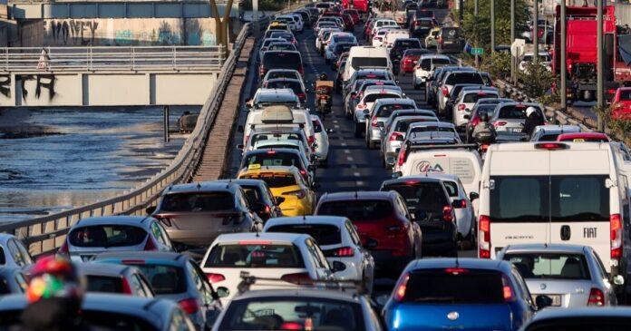 Ένα απέραντο πάρκινγκ θυμίζει ο Κηφισός και η εθνική οδός Αθηνών-Κορίνθου καθώς η κίνηση στους δρόμους είναι αφόρητη και επεκτείνεται από την Ελευσίνα έως την Αθήνα.