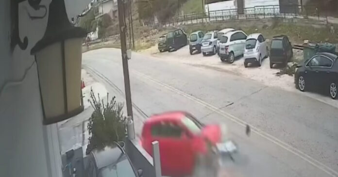 Στο βίντεο του ekorinthos.gr όπου καταγράφηκε το τροχαίο φαίνεται αρχικά ένα κόκκινο αυτοκίνητο να ακολουθεί μία ξέφρενη πορεία στο ρεύμα προς Κόρινθο.