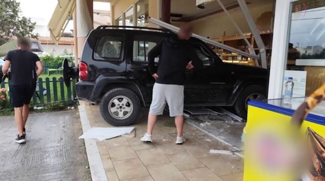 Ο 50χρονος οδηγός του τζιπ που εργάζεται σε ξενοδοχείο της περιοχής πήρε το αυτοκίνητο άλλου κάτοικου του νησιού για να πάει στον φούρνο. Σύμφωνα με πληροφορίες αντί να πατήσει φρένο στο αυτόματο όχημα πάτησε γκάζι με αποτέλεσμα να καρφωθεί στο κατάστημα.