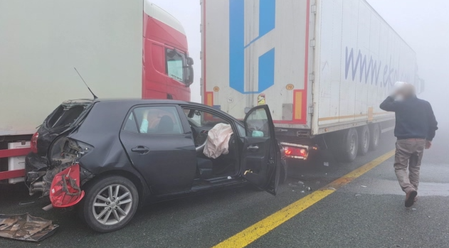 «Ακόμα δεν είχαμε φτάσει στα διόδια. Είχε πάρα πολύ ομίχλη, ήταν σταματημένα αυτοκίνητα προφανώς. Μπροστά μας ήταν μια νταλίκα σταματήσαμε και εμείς αλλά με το που σταματάμε έρχεται η άλλη νταλίκα από πίσω και μας κοπανάει και αυτή. Χτυπήσαμε και στην μπροστά και από πίσω που φάγαμε το χτύπημα, αυτό έγινε με εμάς τουλάχιστον».