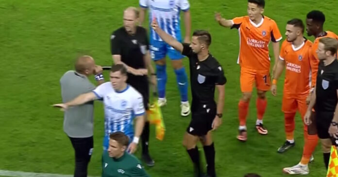 Το αποκορύφωμα, ο διαιτητής έδειξε κόκκινη κάρτα… στον εκφωνητή του γηπέδου, ο οποίος δεν σταμάτησε να σχολιάζει στο μικρόφωνο εν μέσω της έντασης!