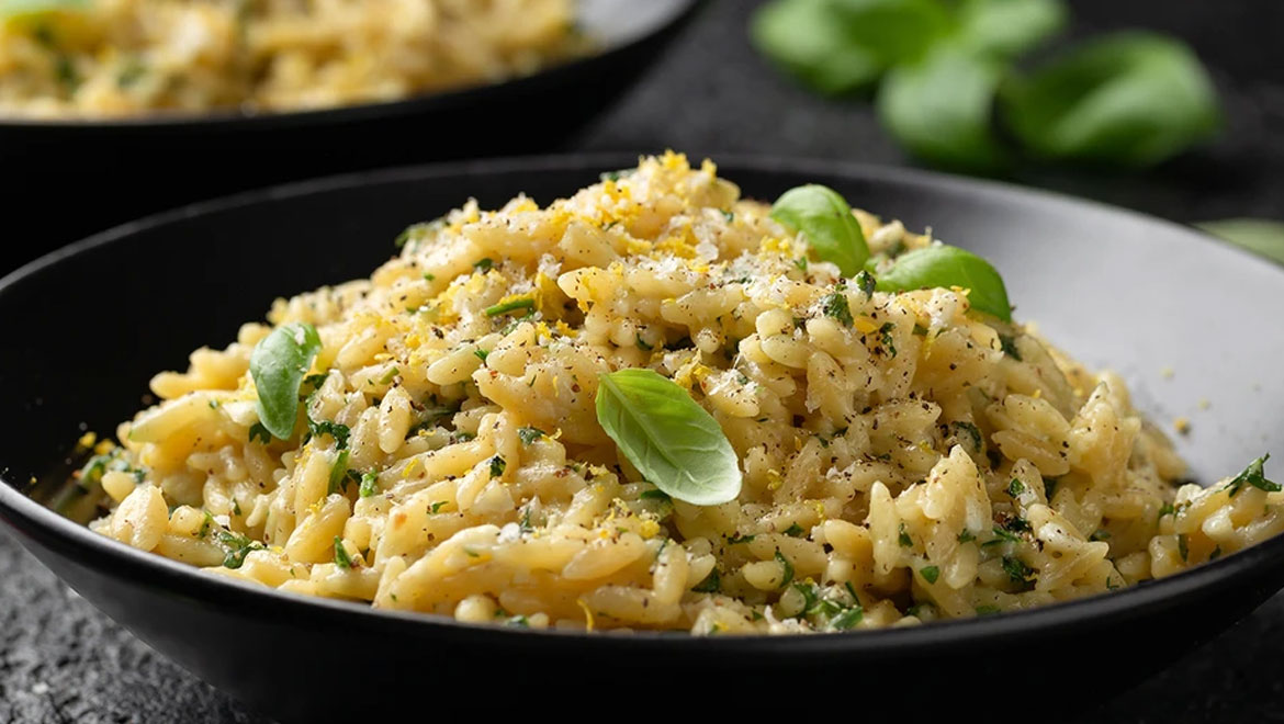 Σερβίρετε σε μπολ, πασπαλισμένα με το υπόλοιπο τυρί, το βασιλικό και το ξύσμα λεμονιού.