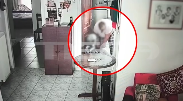 «Χθες έπεσε κάτω, αυτή νόμιζε ότι εγώ έλειπα, ήμουν στην Αθήνα, δεν θα δω κάμερες και όταν μπήκαμε μέσα και είδαμε τις κάμερες τρελαθήκαμε! Τη χτυπούσε στο κεφάλι, την τραβούσε από τα μαλλιά, την έριξε κάτω και την είχε μιάμιση ώρα στο πάτωμα μέχρι να πάω εγώ».